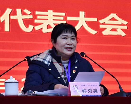 韩秀英向大会作了题为《深入学习贯彻党的二十大精神,凝心聚力担当使命——为建设特色鲜明的高水平应用型大学而不懈奋斗》的工作报告,总结回顾了学校五年来的发展成就,擘画今后五年发展蓝图。