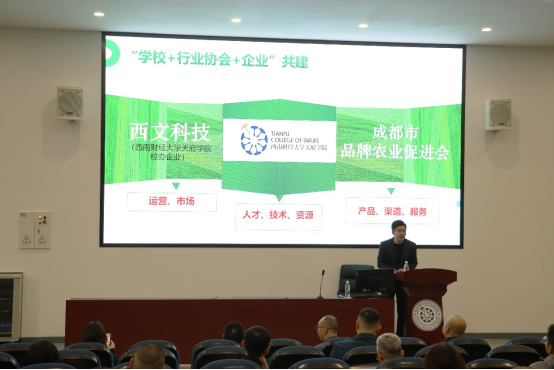 会上,学校现代服务管理学院执行院长、成都市品牌农业促进会秘书长何亮全面总结了促进会自成立以来的工作成效,并对未来发展方向作出了明确规划。他指出,自2022年成立以来,促进会在会长单位的领导下,逐步建立了完善的运营机制,发布了包括《品牌农业与管理》这一行业专著在内的多项研究成果,搭建了会员交流与供需对接的平台。今年,在新一届会长单位牵头下,促进会积极优化业务体系,构建了资源联合、智库服务、品牌人才培养、品牌孵化为核心的业务框架,筹建了集品牌农产品展示、品牌农业孵化培育、农产品直播、商务交流、会务服务为一体的运营基地,为进一步夯实协会服务会员、助力行业提供了硬件、软件基础。他强调,未来协会将围绕“品牌助农、川货出川、乡村振兴”的核心使命,广泛链接农业主体,强化智库支持,持续打造线上线下融合的宣传推广体系,积极开展品牌人才培养和品牌孵化,同时通过拓展农产品交易渠道和策划高影响力品牌活动,不断增强服务能力与行业影响力,努力打造一个共享共建的行业平台,为推动成都市品牌农业高质量发展贡献智慧和力量。