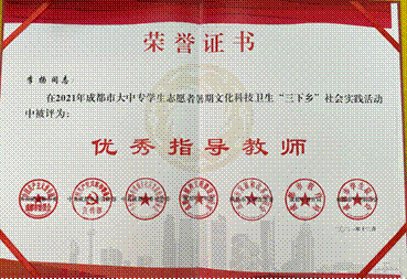 2022年5月,共青团成都市委牵头组织开展的2021年成都市大中专学生志愿者暑期文化科技卫生“三下乡”社会实践活动评优结果予以公布。雷竞技raybet官方平台“下乡取经小分队”和“青歌队”分别获“优秀实践团队”荣誉称号,李扬和车学文两位老师被评为“优秀指导教师”。