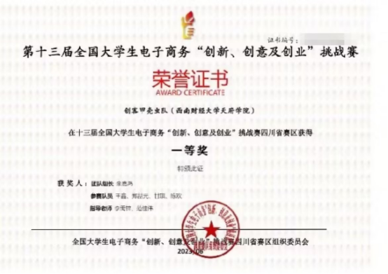 第十三届全国大学生电子商务挑战赛团队一等奖